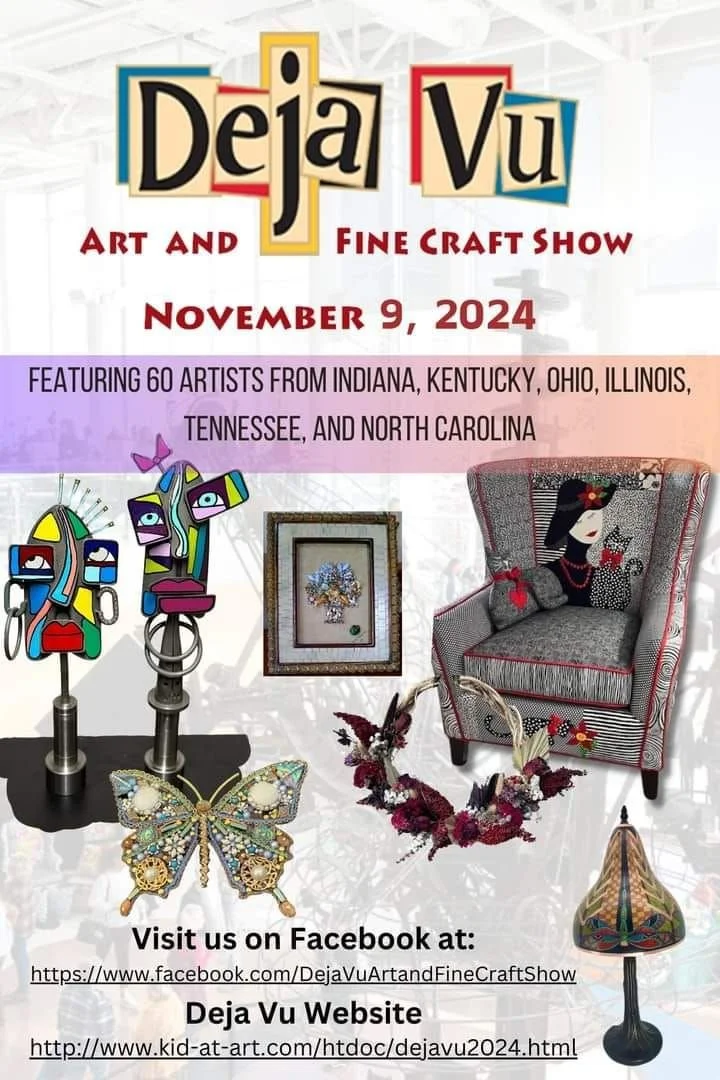 I’m knee-deep in paper mache — making mushrooms and forest wildlife for this one-of-a-kind art show! Mark your calendars for Déjà Vu — Saturday, November 9, 2024 in Columbus, INDIANA