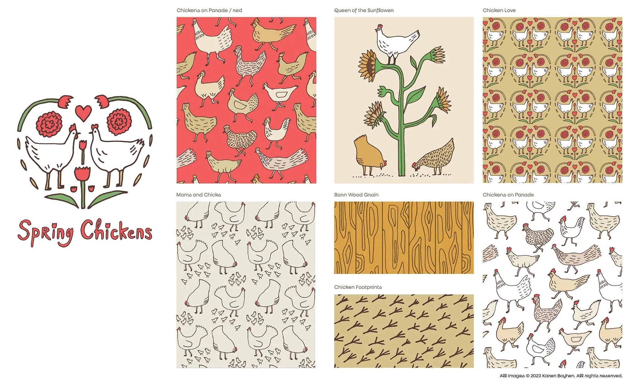 You can see the complete Summer 2023 Surface Design Portfolio by clicking the button below. It includes color pallets, mock-ups, and stories about each collection.